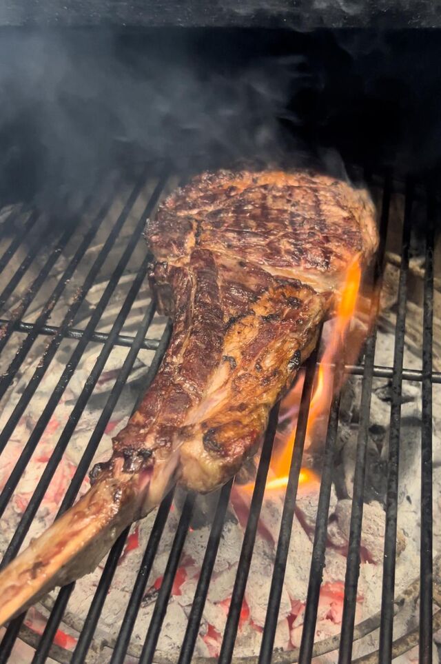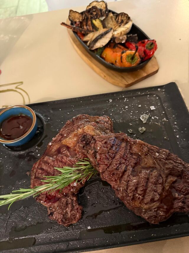 In sottofondo, si sente il chiacchierio dei commensali e il crepitio delle fiamme, mentre le luci soffuse creano un ambiente intimo. Ogni piatto è preparato con ingredienti freschi e di alta qualità, accompagnato da contorni golosi come patate arrosto e insalate croccanti. È il luogo ideale per una cena con amici o una serata romantica, dove la passione per la griglia si unisce al calore dell'ospitalità.
